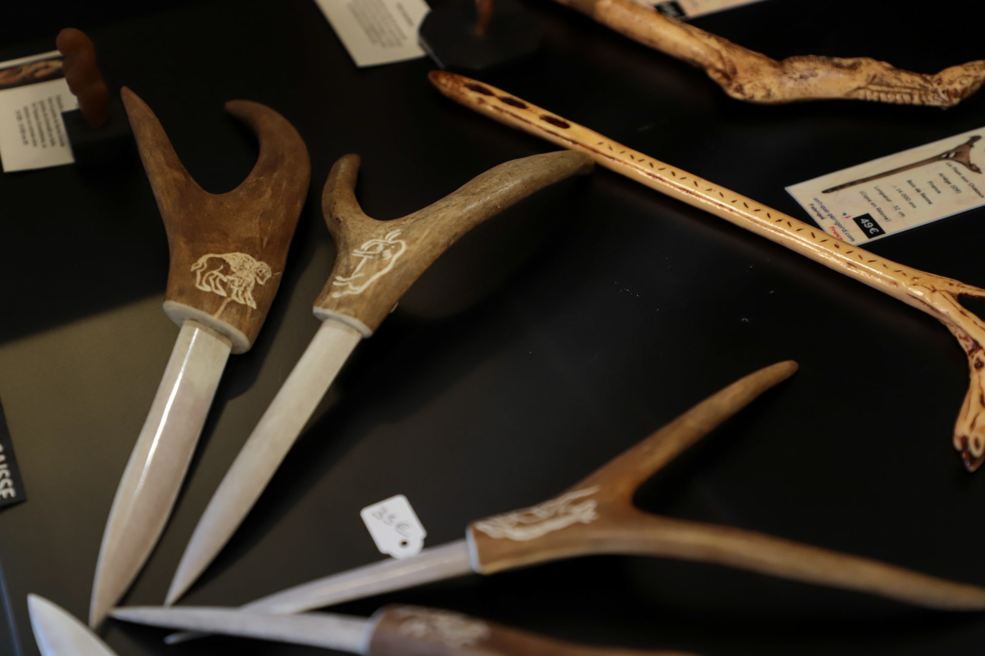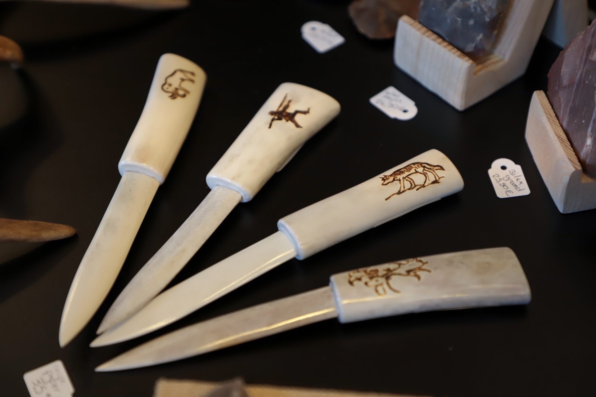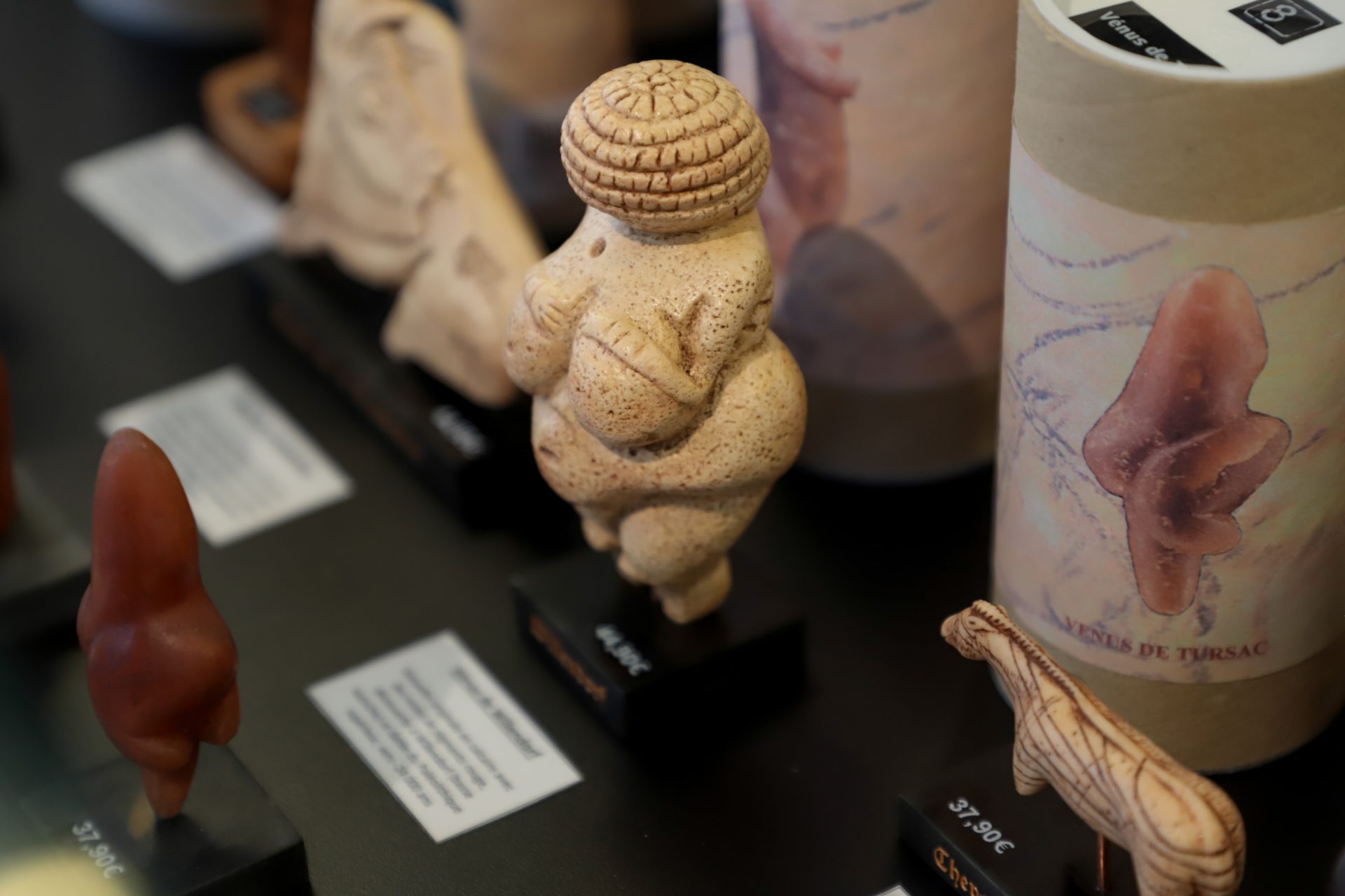 Rapportez un souvenir unique avec nos reproductions de vénus et artefacts emblématiques des découvertes archéologiques sur la Préhistoire. Faites l’acquisition d’un couteau en silex finement gravé ou encore d’une sagaie avec propulseur, que vous avez peut-être eu l’occasion de tester lors de nos animations sur site. Avec notre gamme d’objets décoratifs et utiles, vous pourrez remporter un peu de la grotte Chauvet chez vous : mugs, textiles, vaisselles, magnets, bijoux, affiches et tableaux… Il y en a pour tous les goûts ! Et pour un cadeau d’exception, des objets d’arts inspirés des animaux de la grotte Chauvet et réalisés par des artistes contemporains, sont exposés à la vente.