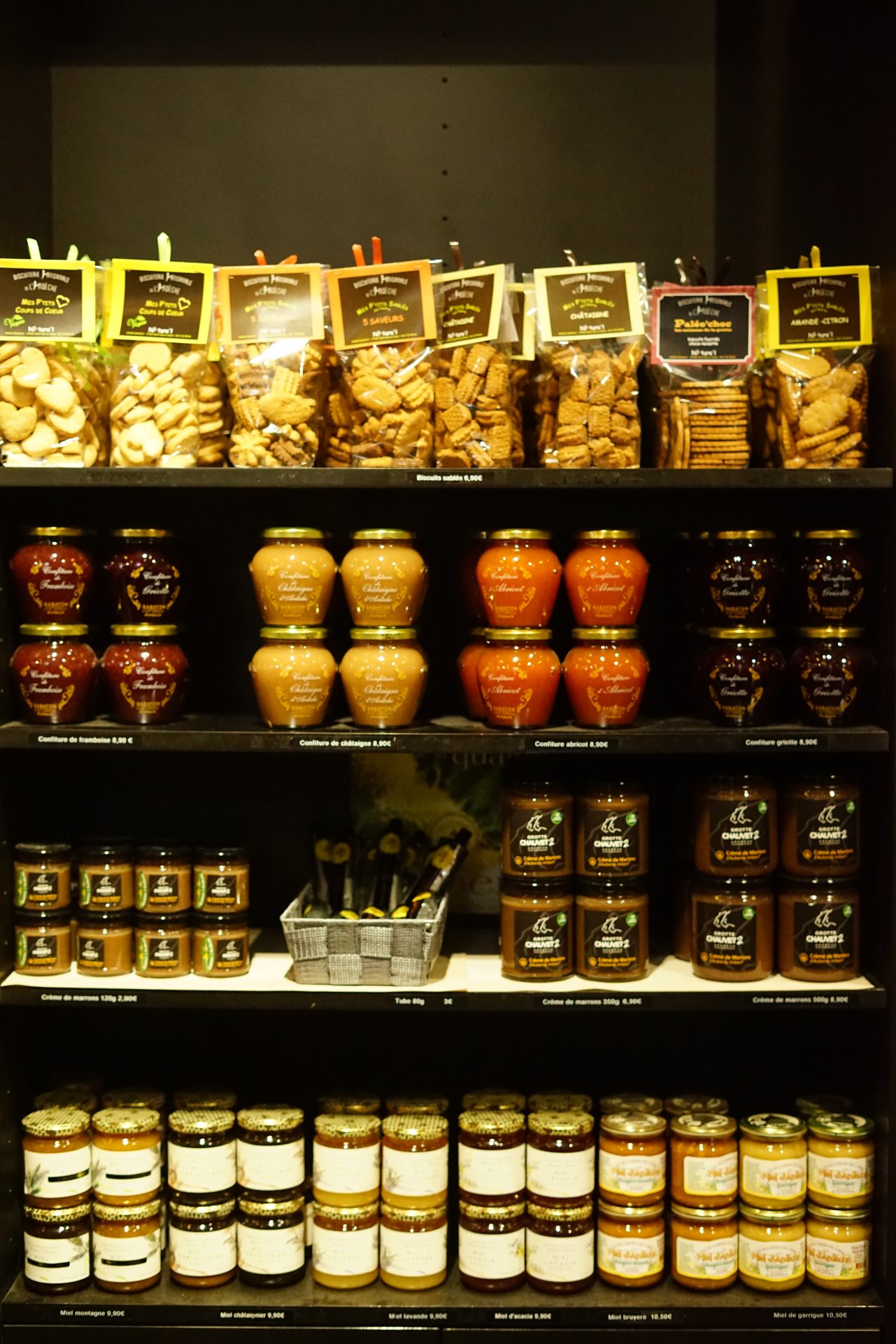 Pour satisfaire les gourmands, goûtez à nos assortiments de produits locaux ; la châtaigne dans toutes ses déclinaisons, miel, confitures, nougats et autres douceurs à accompagner avec des bières et boissons pour passer des moments conviviaux avec vos proches ! La sélection « Goûtez l’Ardèche » est une marque collective déposée vous garantissant des produits de qualité 100% Ardéchois !