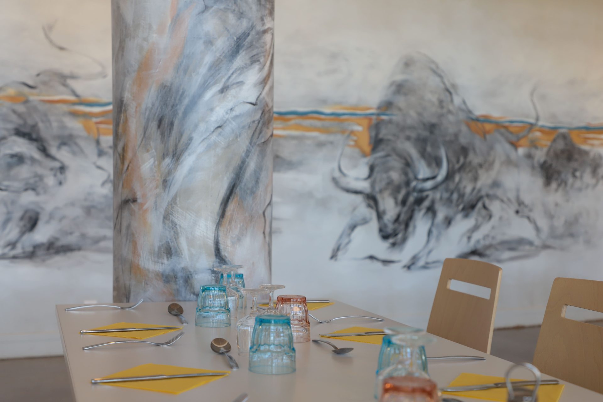 Avec sa terrasse panoramique, profitez d’une vue imprenable sur les monts d’Ardèche et les Cévennes ou installez-vous dans la salle intérieure, décorée de fresques animalières.